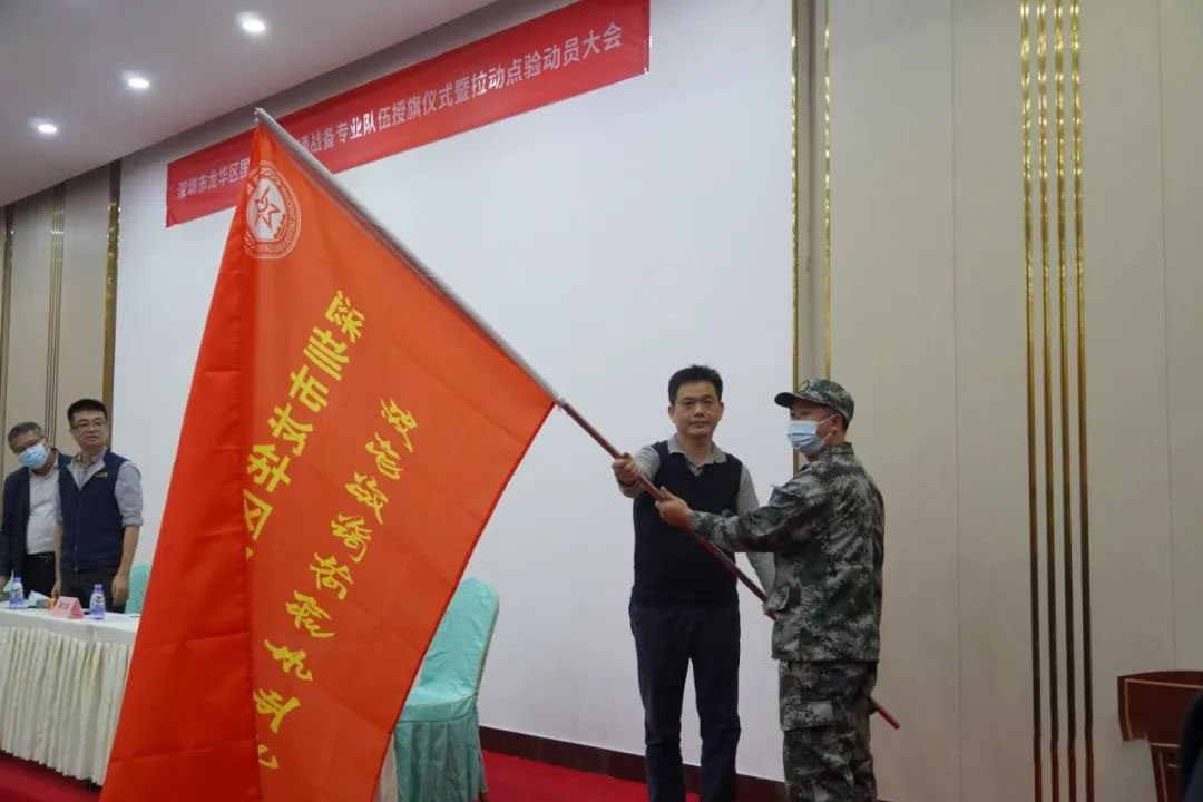 2021年12月9日鹏城驾校承办龙华区交通局国防教育拉练活动,梁文通局长亲自授旗。
